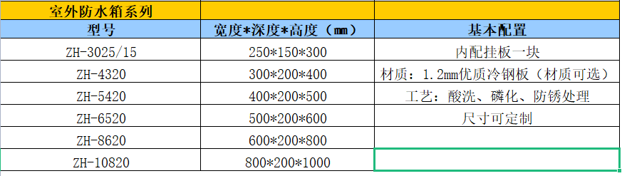 防水箱產(chan)品參(can)數(shu):